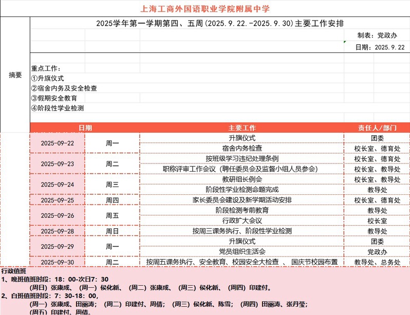 2025学年第一学期第4.5周主要工作安排