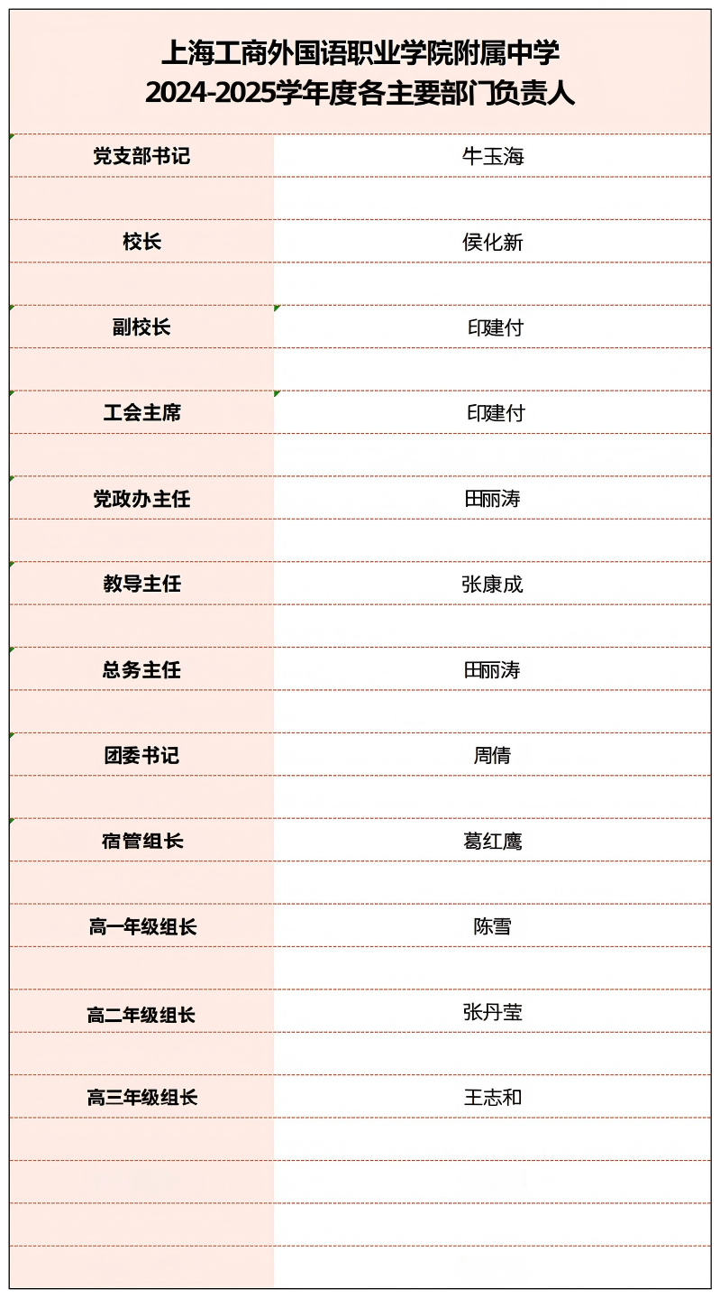 上海工商外国语职业学院附属中学 2024-2025学年度各主要部门负责人