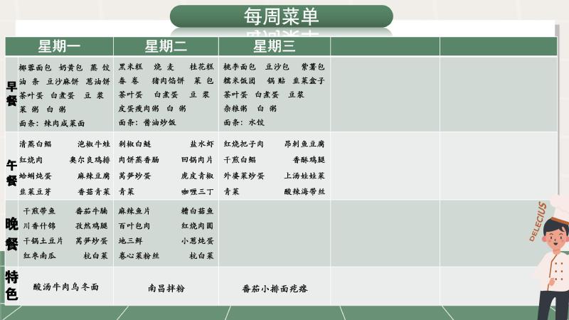 2025学年第一学期18周食谱