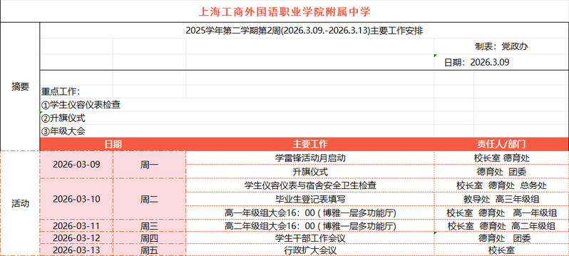 2025学年第二学期第2周主要工作安排