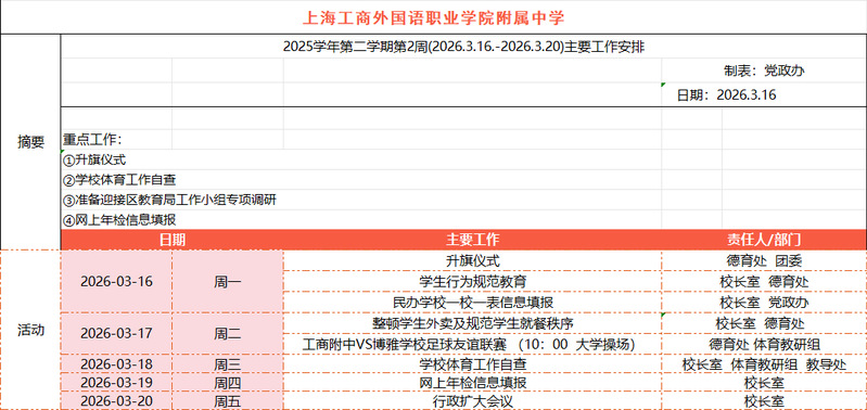 2025学年第二学期第3周主要工作安排