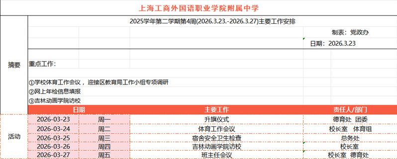2025学年第二学期第4周主要工作安排