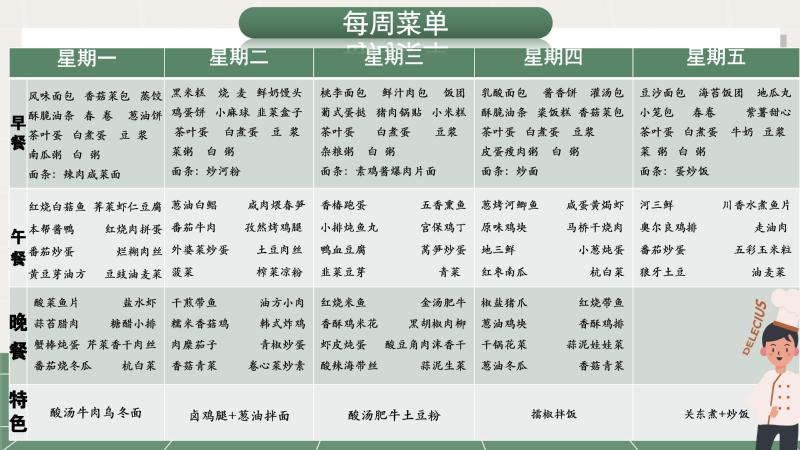 2025学年第二学期5周食谱
