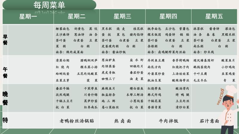 2025学年第二学期6周食谱